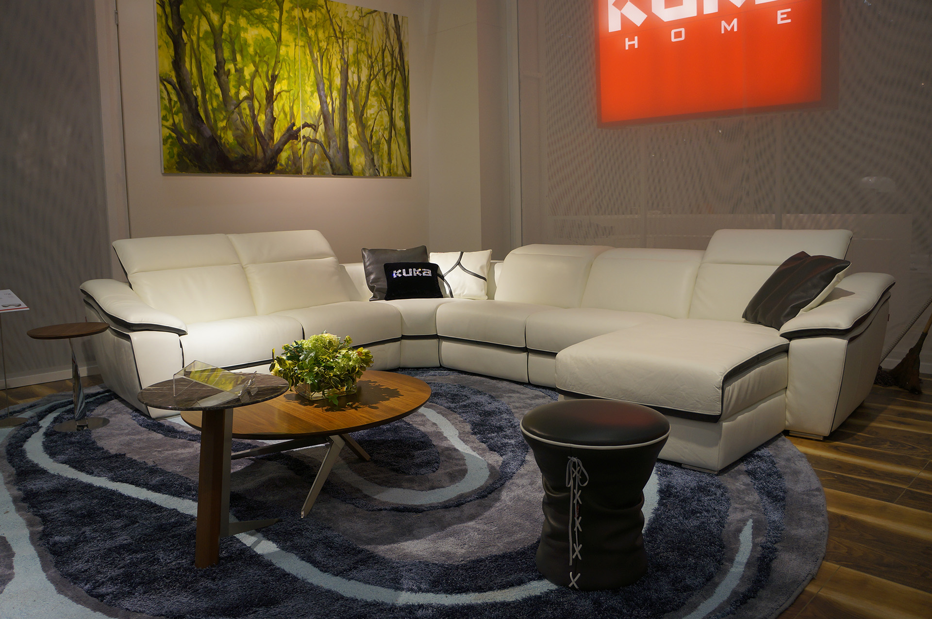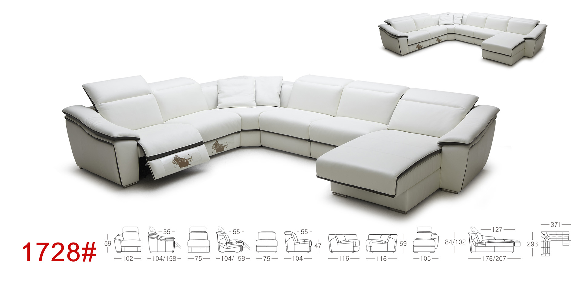 It is a large-size modern combination functional sofa designed with the feature of fluency and dynamic sense which can be converted to different specification according to space requirement. The armrest is designed with streamline type and connects with backrest, impressing people with the sense of relaxation and vividness. Every part of this sofa attracts people’s eyes strongly without redundant ornament: the novel overdye matches the high bright stainless steel feet perfectly, illuminating a flamboyant temperament with individuality charm; the induction button is installed inside the sofa which can be operated simply and conveniently; the stereo fixed in its corner can really make you relax and happy when you lie down.